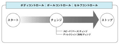 | ●パワーポジションからのスタート(走り) ・ボールミートとはパワーポジションからはじまる重心の移動です。 ・前に踏み出すのではなく、前に倒れる(重心の移動)。 ・この移動がスムーズでない選手は、1度足を後ろに引き、その反動で動き出す(無駄足)をしている。これを直すには、一度両つま先で立ちし、一気にかかとを落して、その反動で1歩目を踏み出すとよい。 ●パワーポジションからボールミート(フロントミート) ・パワーポジションからクロスステップで斜め方向へ大きく踏み出し、ボールを腰まで引き付ける。 この引き付ける動作が重要。 ●パワーポジションからボールミート(リバースミート) ・バスケット特有のターンで、パワーポジションから後ろ回りし、ボールミートする。 体がふらつくので、腰を落とし重心を低くする。 このターンができる = ボディコントロールしている とみてよい。 ●パワーポジションからシュート ・パワーポジションからのシュートは無駄足がなく、動きもスムーズ。 チェンジの動き(スローテンポでおこなう) ●チェンジオブペースで走る ・相手を振り切るための走りで、重要。スタートの1歩目と止まる所を強調します。 ●チェンジオブペースでドリブル ・チェンジオブペースでの走りにドリブルを加えたもの。ストップできるスピードコントロール、 スタートと止まる所を強調して行なう。 リズムとしてはリラックス―沈む(低いドリブル)―リラックス―沈む(低いドリブル)になる。 ●方向転換するための動きを片足でストップしながらのランニングで養う。 ストップの時完全に片足で止まれる、ふらつかない、コントロールできる速さで行なうことが重要。 ●チェンジオブディレクション(キックラン)方向転換するための動き 方向転換で相手とすれ違う動作です。相手にに読まれてはいけないので、まず確実に止まれることが重要。そして鋭いカウンターの動き(右にいくなら左へのカウンター)を入れる ・ストップ(カウンターを入れる)から方向転換する際は、つま先を次に行く方向へむけることがポイント。上体をむけるのではない。 ●カウンターからボールミートへの動き パワーポジションがとれるとダイナミックなボールミートが可能になる。 走っている状態からボールミートするには、ミートの歩幅を倍以上とる(ステップを大きくする)。 ・ボールミートの重心移動を強調する。 ・右にカウンターをあてるなら右足を1歩踏み出してカウンターし、左側でボールミートする。ボールミートの重心移動を強調する。 ・進む方向と逆の足(右方向へなら左足から1歩目がはじまる)クロススタートもある。 ストップの動き(スローテンポでおこなう) フルスピードとトップスピードの違い。 止まるためにどのくらいスピードをあげられるか。 ・トップスピードからのストライドストップ(笛が鳴ったと同時にとまれるか?) ・トップスピードからのジャンプストップ |